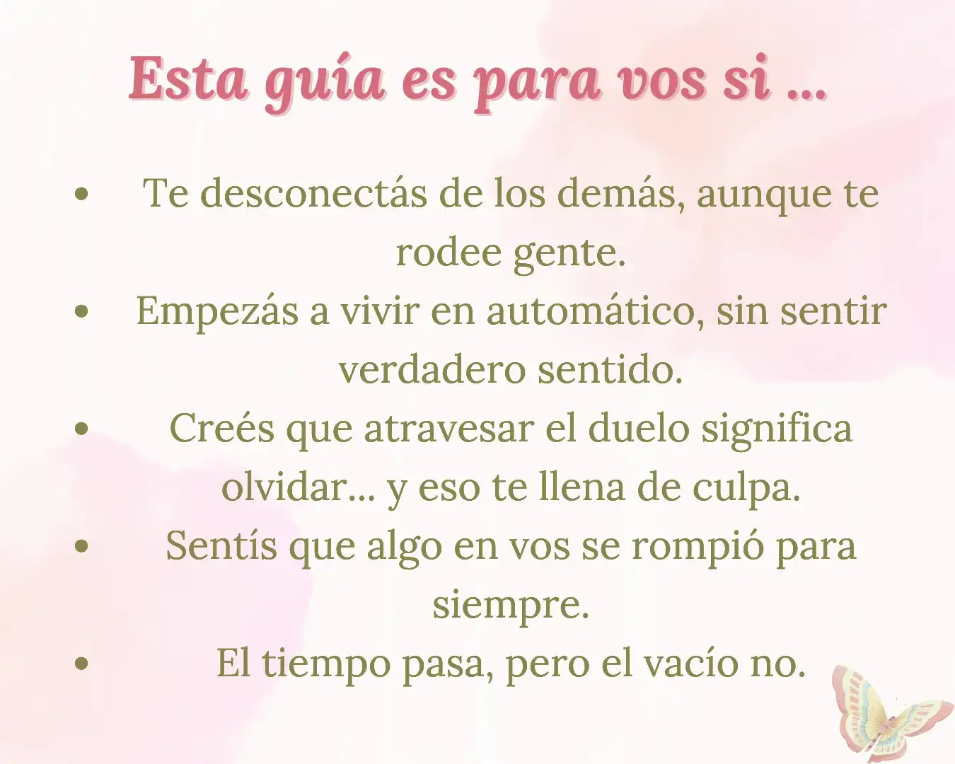A toda persona que haya vivido una pérdida —ya sea una persona, una relación, un trabajo o una etapa de vida— y sienta que el dolor la mantiene estancada.